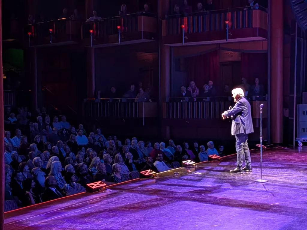 After their set, and a quick four minute change over of the stage Jay Leno came out without announcement and made the crowd laugh until they cried. He has been here a few times, and I wrote about him in my book, Stagehand: A Backstage Pass to my Life Stories.