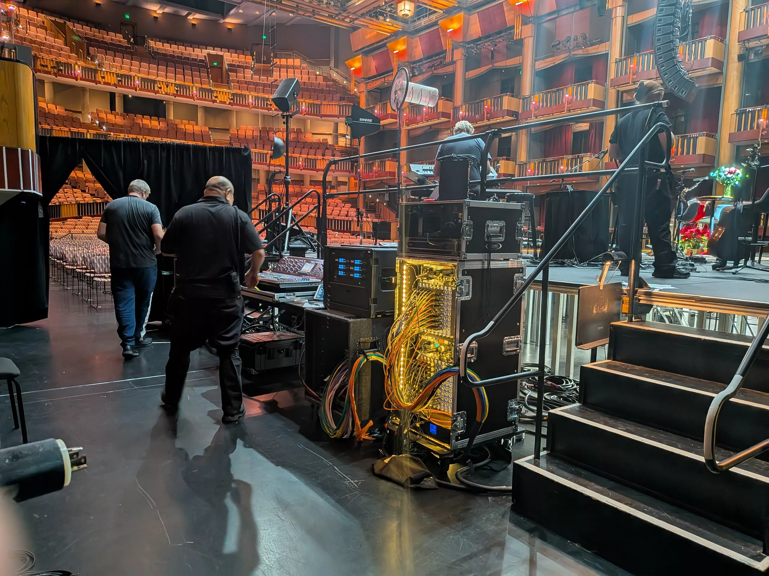 Most of the time here on my blog, I write short bits about the acts onstage. We’ve been busy at work with a lot of shows lately—A Magical Cirque Christmas, Jim Brickman, Pam Tillis together with Lorrie Morgan, Brian McKnight, and Matteo Bocelli, to name a few. All good stuff. I’ll leave a few photos from the Tillis/Morgan show below.